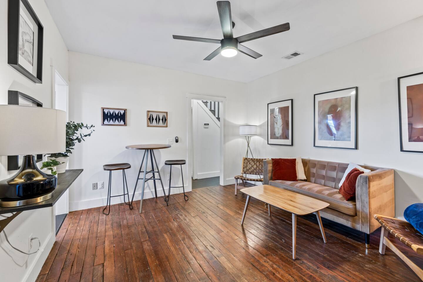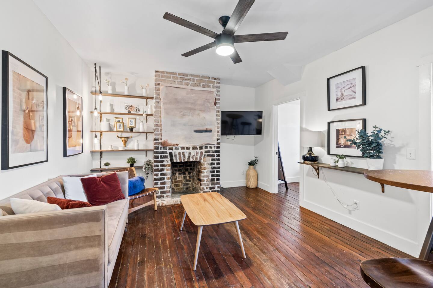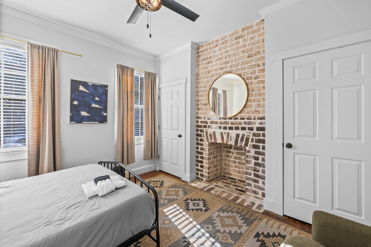 ☆☆ HIGHLIGHTS ☆☆ ✹ This listing is for the entire, 2-apartment, 2-story duplex ✹ Sleeps up to 10 guests ✹ 5 Bedrooms w/ queen beds ✹ 2 Full bathrooms; essential toiletries provided ✹ 2 Full kitchens w/ modern appliances ✹ Keurig coffee maker + complimentary K-cups ✹ 2 Living rooms w/ Roku smart TVs + Netflix ✹ Original hardwood floors + decorative grey brick fireplaces features (no fires) ✹ 2 Laundry Rooms w/ full-size washers and dryers ✹ Private courtyard w/ deck + spiral staircase + balcony + BBQ grill ✹ Family-friendly; Pack ‘n Play + highchair (available on request) ✹ Dog-friendly (please no cats); pet fee applies ✹ Fast Wi-Fi w/ speeds up to 55 Mbps ✹ Ring camera at front door + Electronic locks ✹ Electronic keypads for convenient self-check-in ✹ Free on-street parking (first come, first serve) ✹ Quiet location ✹ Short walk to local attractions + restaurants; easy walk or drive to groceries Eager to Read More? Here Are A Few Kind Words from Our Previous Guests: “Plenty of bedrooms to fit a bigger party. Well decorated with a big deck to connect the upper and lower houses. The host was incredibly responsive and all in all had a great experience.” – Brooke “We rented the top and bottom levels for a party of 10 for a bachlorette weekend. Plenty of space, great walkable location and very friendly and responsive hosts! Would stay here again!” – Elizabeth “Loved our family’s vacation at Starland Stays. Savannah is such a great walking town, and the location was perfect for everything we wanted to do.” – Virginia ☆☆ YOUR HOME AWAY FROM HOME ☆☆ This lovely 2-apartment, 5-bedroom duplex perfectly blends a mid-century aesthetic with cozy comfort. Located on “the prettiest street in Savannah” and just blocks away from everything the Historic District has to offer. Built in 1867 by George Bulloch and Cyrus Campfield, this unique 2 story, loft cottage is within the East Historic District’s Beach Institute Neighborhood. First developed in the 1850s to house workers of the Savannah-Albany Railroad, this peaceful residential neighborhood retains much of its original charm and is one of the oldest surviving African American neighborhoods in Savannah. ★★ BEDROOMS ★★ Whether you're traveling with family or friends, our bedrooms offer a comfortable and relaxing stay after a day exploring the city. The lower unit sleeps 4 guests utilizing 2 queen beds. The upper unit sleeps 6 guests utilizing 3 queen beds. ✹ 1st Floor Primary bedroom – Garden Room; Queen size bed + decorative fireplace + chair ✹ 1st Floor Second bedroom – Nomad Room; Queen size bed ✹ 2nd Floor Third bedroom - Canyon Room; Queen size bed + decorative fireplace + 2 chairs ✹ 2nd Floor Fourth bedroom – Palm Room; Queen size bed + dual-aspect windows ✹ 2nd Floor Loft bedroom – Explorer Room; Queen size bed + decorative fireplace + 2 chairs + Roku TV ✔ 6 Queen beds w/ 12” Zinus Green Tea memory foam mattresses ✔ Premium, 400 thread count sheets ✔ Extra pillows and blankets ✔ Closets + full-length mirrors ✔ Room-darkening shades ✔ Full-size washer + dryer + iron (in Canyon room) ✔ Electronic door locks ★★ BATHROOMS ★★ The home has two pristine full bathrooms with the amenities you need for a refreshing stay. Enjoy complimentary toiletries, helping you save vital luggage space for your favorite belongings and all-important souvenirs. ✹ 1st Floor – Full bathroom; Large walk-in shower w/ 2 adjustable rain-heads ✹ 2nd Floor – Full bathroom; Walk-in shower w/ adjustable rain-head ✔ Walk-in showers w/ rain-heads + single vanities ✔ Essential toiletries provided (shampoo + conditioner + body wash) ✔ Hair dryer + iron ✔ Fresh towels ★★ KITCHEN & DINING ★★ Enjoy the convenience of two full kitchens equipped with the essentials you might need to whip up a quick bite or a light meal during your stay. There is no formal dining room but there is a bistro-style dining table that seats 2 in each living room, plus a bistro table on the deck and balcony. ✹ 1st Floor – Full kitchen; dining table w/ 2 chairs in living room ✹ 2nd Floor – Full kitchen; bar-height dining table w/ 2 stools in living room ✔ Fully equipped kitchen w/ stainless steel appliances ✔ Keurig coffee maker + complimentary Keurig coffee cups ✔ Essential cookware + dinnerware (including kid-friendly tableware) ✔ Highchair for kids (upon request) ★★ LIVING ROOMS ★★ After exploring Savannah’s beautiful Historic District, you can look forward to kicking back in comfort with two inviting living rooms. Taking center stage are original, grey brick fireplace features (no fires) and one-of-a-kind artwork created by Savannah College of Art & Design (SCAD) alumni. ✹ 1st Floor – Living area; Sofa + 2 cozy lounge chairs ✹ 2nd Floor - Living area; Sofa + 1 lounge chair ✔ Decorative brick fireplace features (no fires) ✔ Flat-screen Roku smart TVs + Netflix ✔ Pack ‘n Play (upon request) ✔ Kids’ books, toys + board games (upon request) ★★ OUTDOOR SPACE ★★ This adorable home has a private deck overlooking the courtyard - the perfect place to enjoy your first sip of morning coffee, an afternoon BBQ, or cocktails before heading out for the night. ✔ Private courtyard ✔ Deck + spiral staircase + BBQ Grill + bistro table (seats 2) ✔ Balcony + bistro table (seats 2) ★★ ACTIVITIES/ATTRACTIONS ★★ Beneath a veil of Spanish moss lies the breathtaking beauty of Savannah, home to first-class restaurants, stunning architecture, and unrivaled art and culture. Our home is within walking distance to many Savannah favorites, including Fox & Fig, Hitch, Peregrin and J.Christopher’s. It’s the ideal base to enjoy the best Savannah has to offer, from unique culinary experiences to inspirational galleries and museums. Check out some of the unforgettable experiences awaiting you: ✹ Savannah Historic District - 