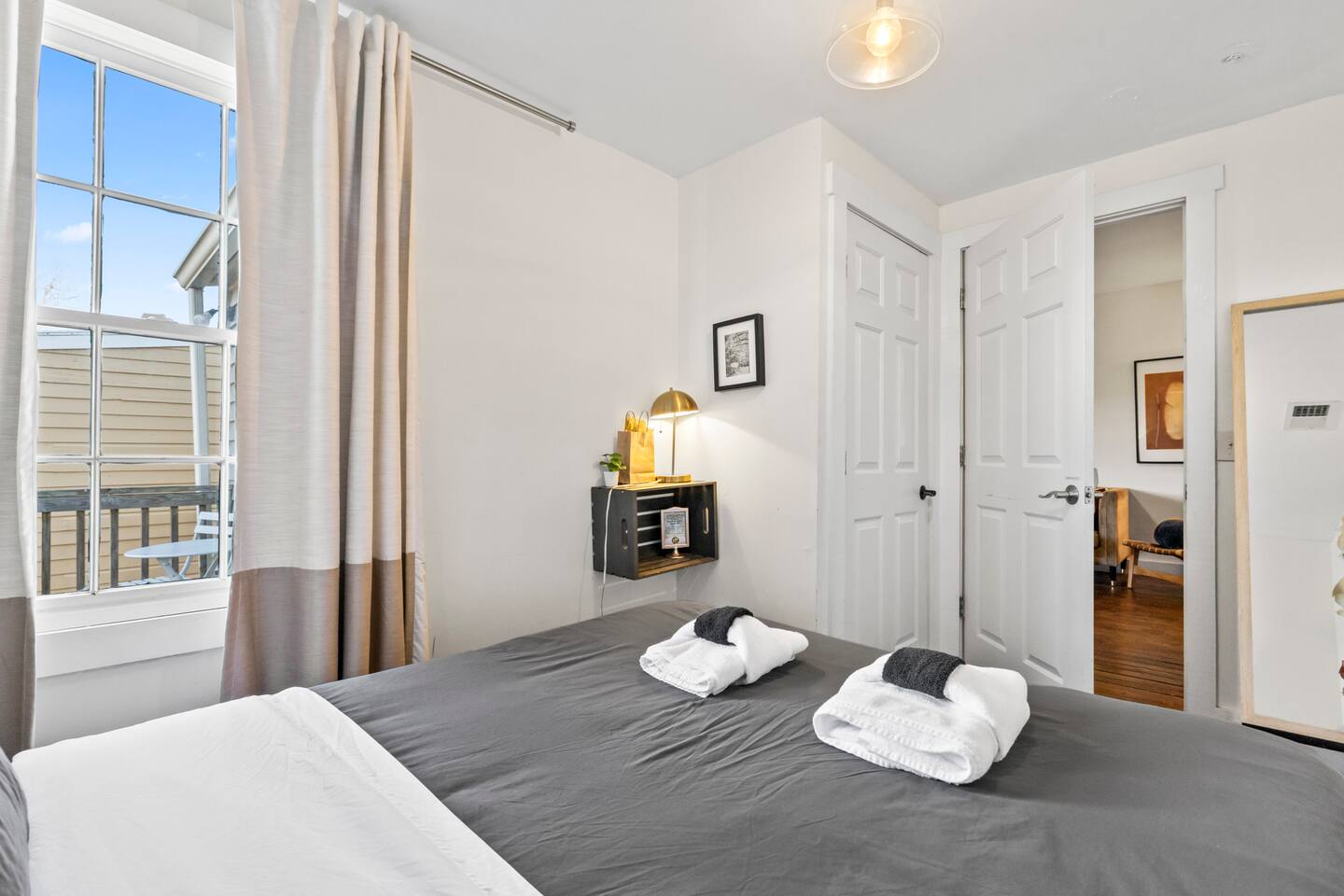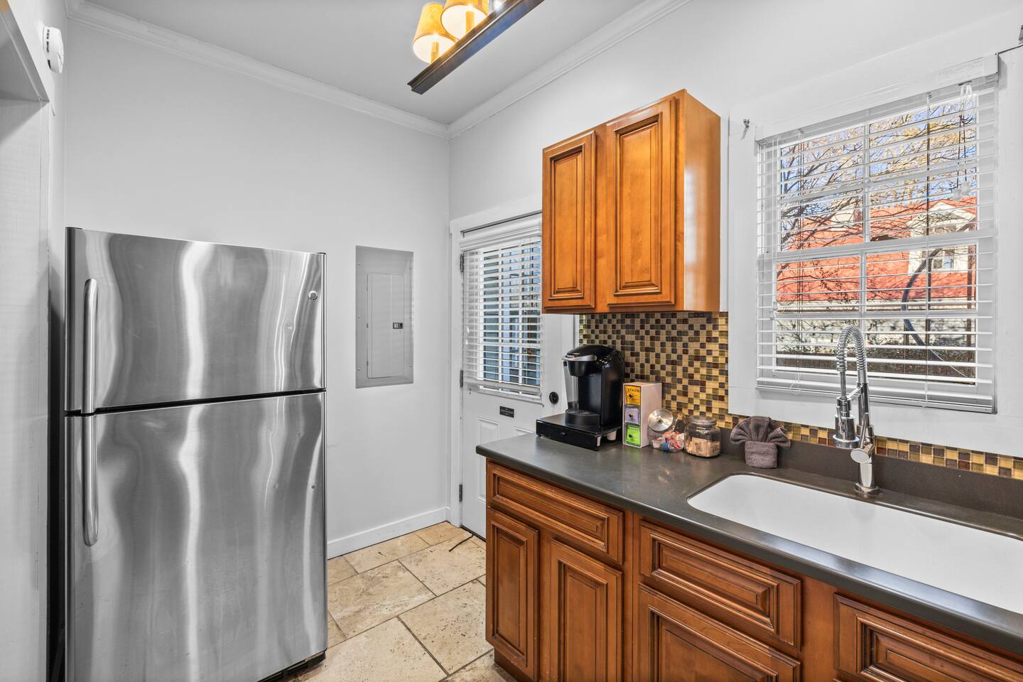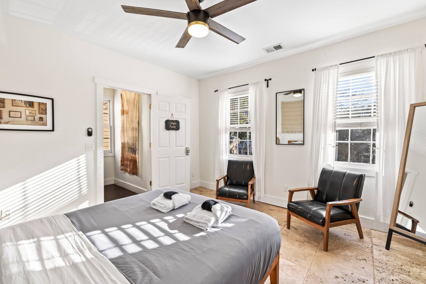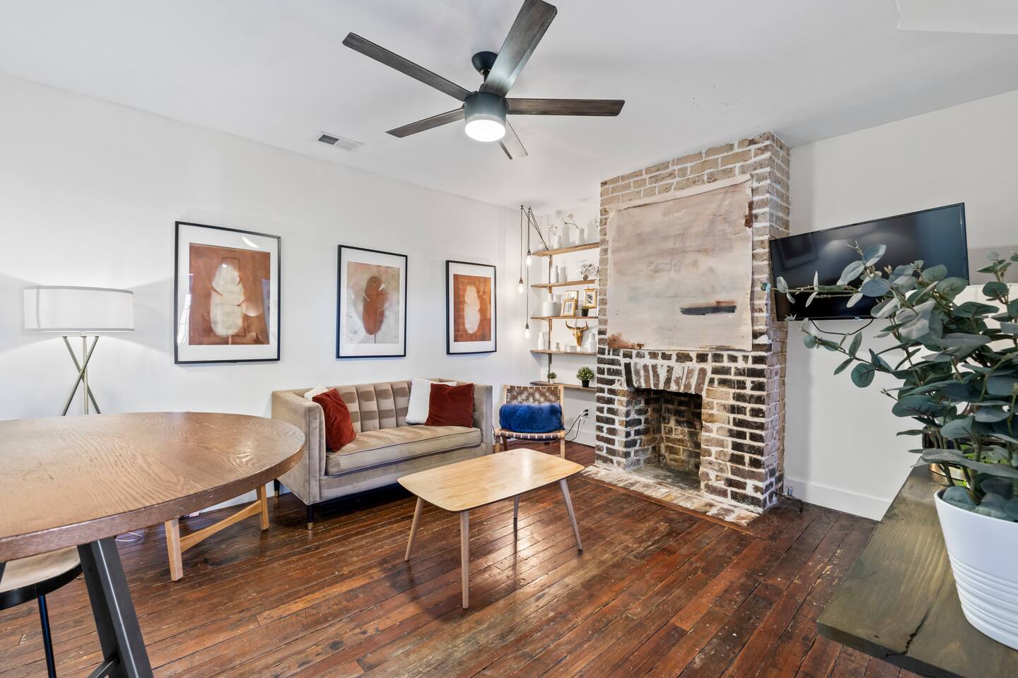 ☆☆ HIGHLIGHTS ☆☆ ✹ This listing is for the entire, 2-apartment, 2-story duplex ✹ Sleeps up to 10 guests ✹ 5 Bedrooms w/ queen beds ✹ 2 Full bathrooms; essential toiletries provided ✹ 2 Full kitchens w/ modern appliances ✹ Keurig coffee maker + complimentary K-cups ✹ 2 Living rooms w/ Roku smart TVs + Netflix ✹ Original hardwood floors + decorative grey brick fireplaces features (no fires) ✹ 2 Laundry Rooms w/ full-size washers and dryers ✹ Private courtyard w/ deck + spiral staircase + balcony + BBQ grill ✹ Family-friendly; Pack ‘n Play + highchair (available on request) ✹ Dog-friendly (please no cats); pet fee applies ✹ Fast Wi-Fi w/ speeds up to 55 Mbps ✹ Ring camera at front door + Electronic locks ✹ Electronic keypads for convenient self-check-in ✹ Free on-street parking (first come, first serve) ✹ Quiet location ✹ Short walk to local attractions + restaurants; easy walk or drive to groceries Eager to Read More? Here Are A Few Kind Words from Our Previous Guests: “Plenty of bedrooms to fit a bigger party. Well decorated with a big deck to connect the upper and lower houses. The host was incredibly responsive and all in all had a great experience.” – Brooke “We rented the top and bottom levels for a party of 10 for a bachlorette weekend. Plenty of space, great walkable location and very friendly and responsive hosts! Would stay here again!” – Elizabeth “Loved our family’s vacation at Starland Stays. Savannah is such a great walking town, and the location was perfect for everything we wanted to do.” – Virginia ☆☆ YOUR HOME AWAY FROM HOME ☆☆ This lovely 2-apartment, 5-bedroom duplex perfectly blends a mid-century aesthetic with cozy comfort. Located on “the prettiest street in Savannah” and just blocks away from everything the Historic District has to offer. Built in 1867 by George Bulloch and Cyrus Campfield, this unique 2 story, loft cottage is within the East Historic District’s Beach Institute Neighborhood. First developed in the 1850s to house workers of the Savannah-Albany Railroad, this peaceful residential neighborhood retains much of its original charm and is one of the oldest surviving African American neighborhoods in Savannah. ★★ BEDROOMS ★★ Whether you're traveling with family or friends, our bedrooms offer a comfortable and relaxing stay after a day exploring the city. The lower unit sleeps 4 guests utilizing 2 queen beds. The upper unit sleeps 6 guests utilizing 3 queen beds. ✹ 1st Floor Primary bedroom – Garden Room; Queen size bed + decorative fireplace + chair ✹ 1st Floor Second bedroom – Nomad Room; Queen size bed ✹ 2nd Floor Third bedroom - Canyon Room; Queen size bed + decorative fireplace + 2 chairs ✹ 2nd Floor Fourth bedroom – Palm Room; Queen size bed + dual-aspect windows ✹ 2nd Floor Loft bedroom – Explorer Room; Queen size bed + decorative fireplace + 2 chairs + Roku TV ✔ 6 Queen beds w/ 12” Zinus Green Tea memory foam mattresses ✔ Premium, 400 thread count sheets ✔ Extra pillows and blankets ✔ Closets + full-length mirrors ✔ Room-darkening shades ✔ Full-size washer + dryer + iron (in Canyon room) ✔ Electronic door locks ★★ BATHROOMS ★★ The home has two pristine full bathrooms with the amenities you need for a refreshing stay. Enjoy complimentary toiletries, helping you save vital luggage space for your favorite belongings and all-important souvenirs. ✹ 1st Floor – Full bathroom; Large walk-in shower w/ 2 adjustable rain-heads ✹ 2nd Floor – Full bathroom; Walk-in shower w/ adjustable rain-head ✔ Walk-in showers w/ rain-heads + single vanities ✔ Essential toiletries provided (shampoo + conditioner + body wash) ✔ Hair dryer + iron ✔ Fresh towels ★★ KITCHEN & DINING ★★ Enjoy the convenience of two full kitchens equipped with the essentials you might need to whip up a quick bite or a light meal during your stay. There is no formal dining room but there is a bistro-style dining table that seats 2 in each living room, plus a bistro table on the deck and balcony. ✹ 1st Floor – Full kitchen; dining table w/ 2 chairs in living room ✹ 2nd Floor – Full kitchen; bar-height dining table w/ 2 stools in living room ✔ Fully equipped kitchen w/ stainless steel appliances ✔ Keurig coffee maker + complimentary Keurig coffee cups ✔ Essential cookware + dinnerware (including kid-friendly tableware) ✔ Highchair for kids (upon request) ★★ LIVING ROOMS ★★ After exploring Savannah’s beautiful Historic District, you can look forward to kicking back in comfort with two inviting living rooms. Taking center stage are original, grey brick fireplace features (no fires) and one-of-a-kind artwork created by Savannah College of Art & Design (SCAD) alumni. ✹ 1st Floor – Living area; Sofa + 2 cozy lounge chairs ✹ 2nd Floor - Living area; Sofa + 1 lounge chair ✔ Decorative brick fireplace features (no fires) ✔ Flat-screen Roku smart TVs + Netflix ✔ Pack ‘n Play (upon request) ✔ Kids’ books, toys + board games (upon request) ★★ OUTDOOR SPACE ★★ This adorable home has a private deck overlooking the courtyard - the perfect place to enjoy your first sip of morning coffee, an afternoon BBQ, or cocktails before heading out for the night. ✔ Private courtyard ✔ Deck + spiral staircase + BBQ Grill + bistro table (seats 2) ✔ Balcony + bistro table (seats 2) ★★ ACTIVITIES/ATTRACTIONS ★★ Beneath a veil of Spanish moss lies the breathtaking beauty of Savannah, home to first-class restaurants, stunning architecture, and unrivaled art and culture. Our home is within walking distance to many Savannah favorites, including Fox & Fig, Hitch, Peregrin and J.Christopher’s. It’s the ideal base to enjoy the best Savannah has to offer, from unique culinary experiences to inspirational galleries and museums. Check out some of the unforgettable experiences awaiting you: ✹ Savannah Historic District - 