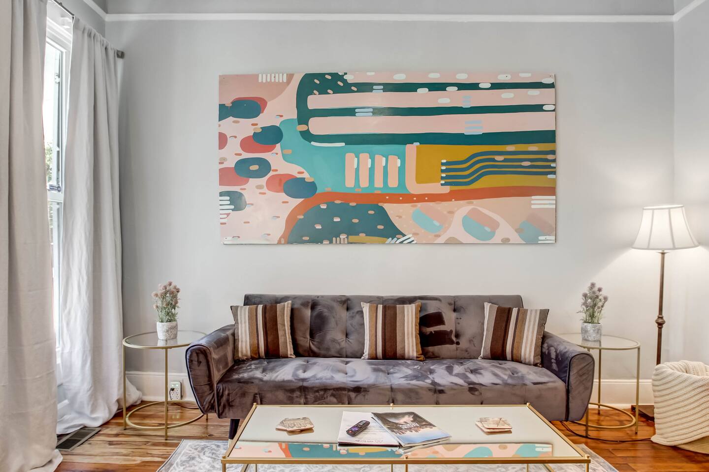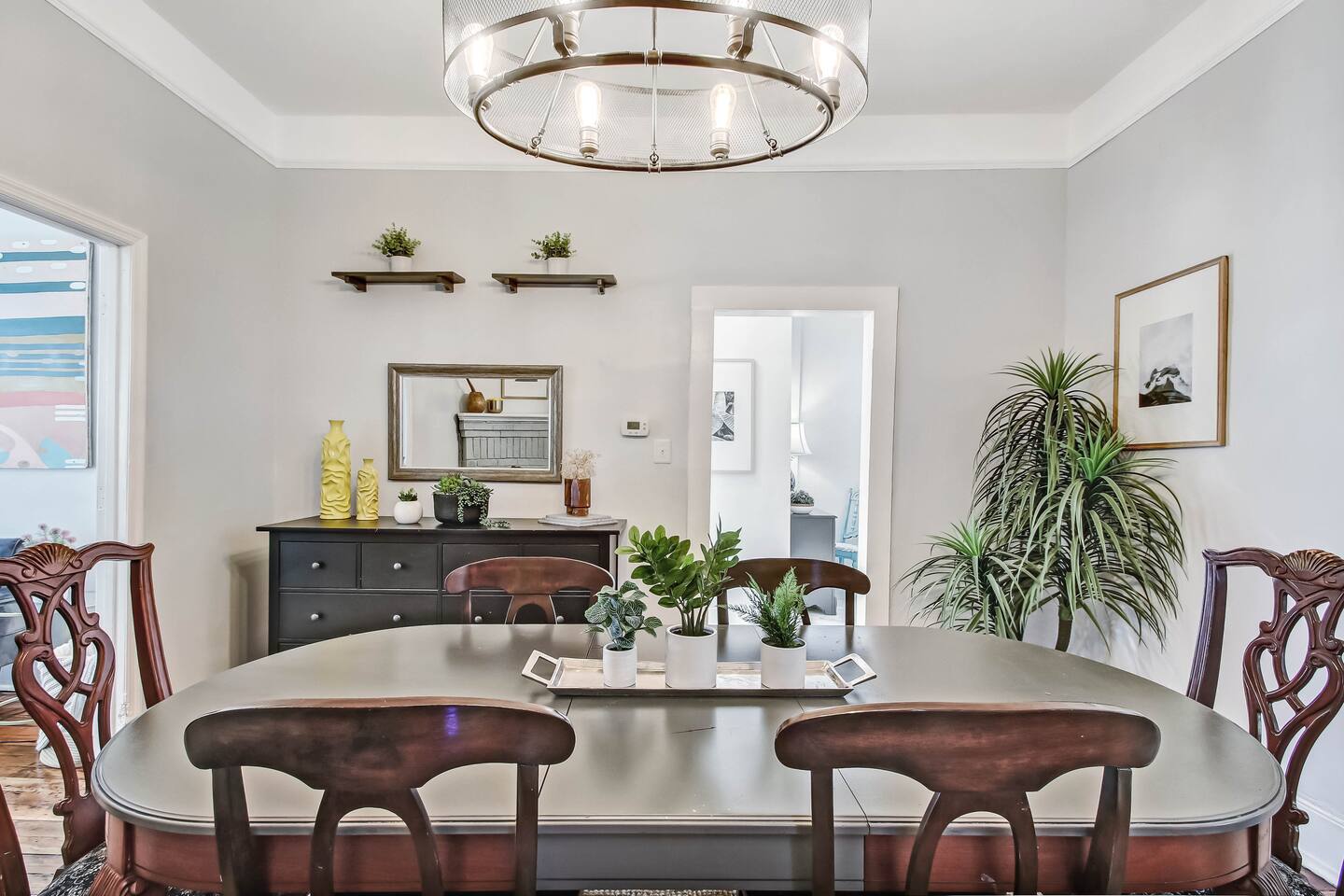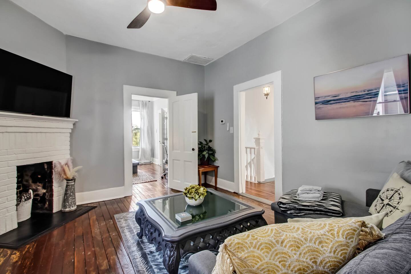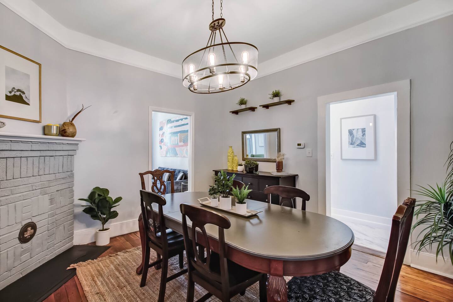 ☆☆ HIGHLIGHTS ☆☆ ✹ Entire, 2-story duplex house w/ 2 apartments ✹ 3 Bedrooms; 3 comfortable queen bed (sleeps 6) ✹ 2 Living rooms; 1 full-size + 1 queen-size sleeper sofa (sleeps 3) ✹ 2 Full bathrooms; complimentary essential toiletries ✹ 2 Full kitchens w/ modern appliances ✹ 5 Flat-screen Roku Smart TVs w/ Netflix ✹ 2 Dedicated workspace w/ desk + chair ✹ 2 In-unit washer and dryer + laundry pods + iron ✹ Free high-speed Wi-Fi ✹ Central air-conditioning ✹ Family-friendly; Pack ‘n Play + highchair (available on request) ✹ Large wrap-around front porch ✹ Fenced back yard + furnished patio ✹ Dog-friendly (please no cats); pet fee applies ✹ Free on-street parking ✹ Free DOT trolley just a 5-minute walk ✹ Short walk to local restaurants; easy walk or drive to markets Eager to Read More? Here Are A Few Kind Words from Our Previous Guests: “Great stay!! I had my bachelorette trip and we stayed here. The beds were SO comfortable and the place was so cute!!” - Madeline “The house was in a super convenient location and we loved having a backyard for our dogs! The furnishings were comfortable and stylish. The host was responsive. We would stay here again.” - Jill ☆☆ YOUR HOME AWAY FROM HOME ☆☆ This 3-bedroom, dog-friendly, 2-story duplex home features 2 private apartments, that can sleep up to 9 guests, and is perfect for families! Located in the heart of Savannah’s Victorian District, you’ll love being in this very walkable downtown neighborhood - just a short 10-minute walk to Savannah’s iconic Forsyth Park! Enjoy an authentic neighborhood experience! Walk to many popular local restaurants in the trendy So-Fo neighborhood and experience Savannah’s vibrant culinary scene. ★★ BEDROOMS ★★ Whether you're traveling with family or friends, our bedrooms offer a relaxing retreat after a day exploring the city. With comfortable, queen-size beds topped with plush, memory foam mattresses, and soft, premium, 400-thread-count sheets and plenty of great amenities to ensure a relaxing stay. The upper and lower units can accommodate a total of 9 guests utilizing the 3 queen beds + 2 living room sleeper sofas. ✹ 1st Floor – Primary bedroom: Queen size bed + 2 closets + dresser ✹ 1st Floor – Living area: Full-size sleeper sofa ✹ 2nd Floor – Primary bedroom: Queen size bed + dedicated workspace ✹ 2nd Floor – Second bedroom: Queen size bed + closet + dresser ✹ 2nd Floor – Living area: Queen-size sleeper sofa ✔ 12” Zinus Green Tea memory foam mattresses ✔ Premium, 400 thread count sheets ✔ Extra pillows and blankets ✔ Flat screen Roku smart TVs w/ Netflix ★★ BATHROOMS ★★ Wash up in two sparkling clean, full bathrooms stocked with fresh towels and complimentary toiletries for your convenience. Save that valuable luggage space for souvenirs instead! ✹ 1st Floor – Full bathroom; tub/shower combo + single vanity ✹ 2nd Floor – Full bathroom; tub/shower combo + single vanity ✔ Essential toiletries provided (shampoo + conditioner + body wash) ✔ Hair dryer ✔ Fresh towels ★★ KITCHEN & DINING ★★ With two fully equipped kitchens, when you’re not discovering the local restaurants, you’ve got the perfect place to whip up delicious meals. Stop by Brighter Day Natural Foods, or the Saturday morning Forsyth Farmers Market to pick up fresh, local, ingredients. You’ll find everything you’ll need to enjoy a home-cooked meal including ample cookware and dishware as well as a Keurig coffee machine with complimentary coffee to start your day. ✹ 1st Floor – Full kitchen; bistro table – seats 2 ✹ 1st Floor – Formal dining room; large dining table – seats 6 ✹ 2nd Floor – Full kitchen; dining table - seats 4 ✹ 2nd Floor – No formal dining room ✔ Glass-top electric stove, oven, dishwasher, and microwave ✔ Full-size fridge and freezer ✔ Keurig coffee maker + complimentary Keurig coffee pods ✔ Essential cookware + dinnerware (including kid-friendly tableware) ✔ Highchair (upon request) ★★ LIVING ROOMS ★★ The bright natural light, original wood floors, colorful, modern art, and a vintage decorative fireplace feature create an inviting main living space downstairs. The upstairs living room is a cozy spot for movie night. With dual living spaces and amenities like wall mounted flat screen Roku smart TVs and sleeper sofas you can look forward to kicking back in comfort. ✹ 1st Floor – Living area; full-size sleeper sofa (sleeps 1) + 2 cozy lounge chairs ✹ 2nd Floor - Living area; queen-size sleeper sofa (sleeps 2) ✔ Decorative fireplace features (no fires) ✔ Flat screen Roku smart TVs + Netflix ✔ Pack ‘n Play (upon request) ✔ Kids’ books, toys + board games (upon request) ★★ OUTDOOR SPACE ★★ Step out onto the backyard patio and enjoy some fresh air. It’s the perfect spot to enjoy your morning coffee. ✔ Large wrap-around front porch w/ access to backyard ✔ Fenced backyard + patio + outdoor furniture ★★ ACTIVITIES/ATTRACTIONS ★★ This centrally located Victorian District home is the ideal base to enjoy the best Savannah has to offer from first-class restaurants providing unique culinary experiences to the unrivaled art and culture of our many inspirational galleries and museums. It’s around a 25-minute drive to Tybee Island, where you’ll find some beautiful, wide beaches. Check out some of the unforgettable experiences awaiting you: ✹ Forsyth Park - A short 2 block walk from the home. You'll be strolling under the moss-draped trees, surrounded by amazing architecture. ✹Historic District Walking Tour - Savannah is known for its historic charm and beautifully preserved architecture. Joining a guided walking tour of the historic district is an excellent way to learn about the city's history, including its haunted stories, hidden courtyards, and stunning squares. Several tour companies offer different themed tours, so you can cho