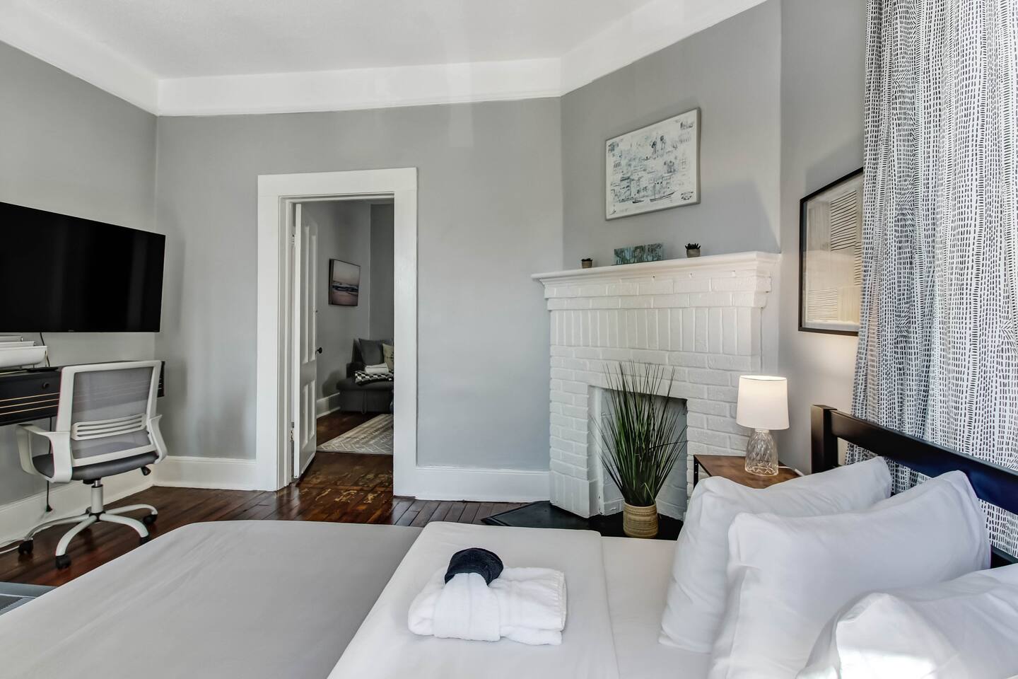 Stay in the heart of Savannah at this private, pet-friendly 3-bedroom park-side duplex—perfect for families, groups, and extended stays. Located in the charming, walkable Victorian District, you’re minutes from top attractions, dining, and historic parks. Walk to SCAD’s Anderson Hall (2 min), Forsyth Park (10 min), or hop on the free DOT shuttle (5 min). Enjoy peaceful comfort with quick access to River Street (10-min Uber) for an unforgettable Savannah getaway. STVR Permit # 02624 & 2625