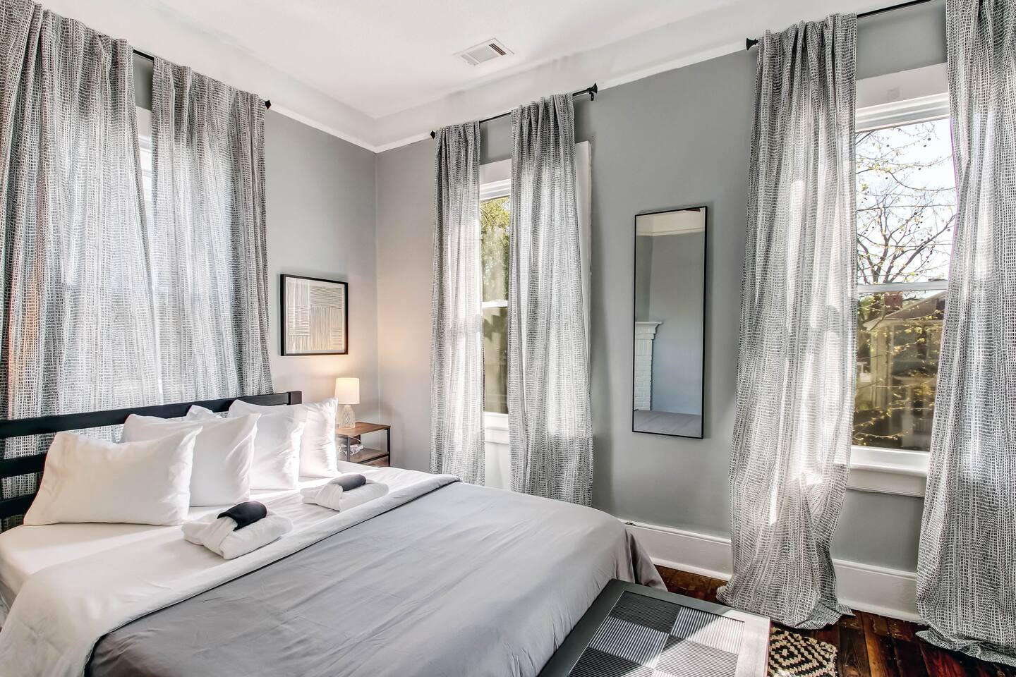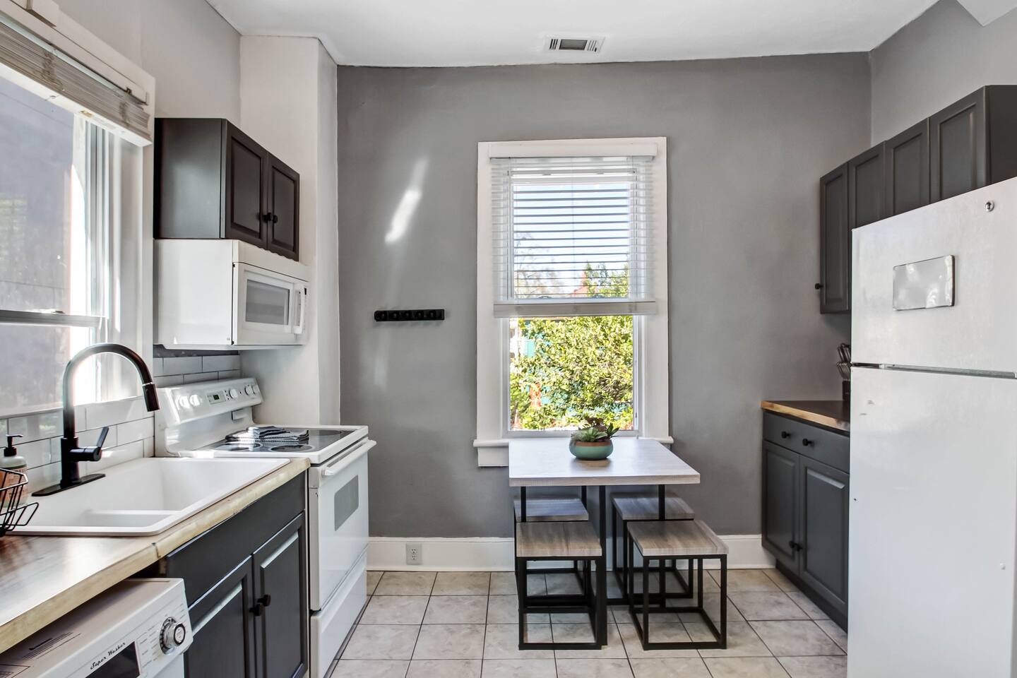 ☆☆ HIGHLIGHTS ☆☆ ✹ Private 2nd floor apartment; Sleeps up to 6 guests ✹ 2 bedrooms; 2 comfortable queen beds ✹ Living Room; 1 queen-size sleeper sofa ✹ 1 full bathroom; complimentary essential toiletries ✹ Full kitchen w/ modern appliances ✹ 3 Flat-screen Roku Smart TVs w/ Netflix ✹ Dedicated workspace w/ desk + chair ✹ Free high-speed Wi-Fi ✹ Central air-conditioning ✹ In-unit, washer and dryer + laundry pods + iron ✹ Dog-friendly (please no cats); pet fee applies ✹ Large wrap-around front porch (Shared w/ guests in lower unit) ✹ Fenced back yard (Shared w/ guests in lower unit) ✹ Free on-street parking ✹ Free DOT trolley just blocks away ✹ Short walk to local restaurants; easy walk or drive to markets Eager to Read More? Here Are A Few Kind Words from Our Previous Guests: “Very pleasant stay. Easy to find and access. Nice cozy easy to live in space. Plenty of space! Good location!” – Joan “Hosts are incredibly responsive, and the place is well kept. We stayed for St Paddys and were easily able to walk to the bars and retaurants, though it takes about 30-40 minutes to arrive. We were given recommendations on alternative parking due to the parade, though ulitmately did not need it as there was plenty of room. Starland was exceptionally quick to answer any questions and respond to every message.” – Jared “fun stay and great recommendations!!” – Rebecca ☆☆ YOUR HOME AWAY FROM HOME ☆☆ Enjoy an authentic neighborhood experience! This prime location, Victorian District home provides the convenience of being just steps away from SCAD’s Anderson Hall, a short 10-minute walk to Forsyth Park, and many popular local restaurants in the trendy So-Fo neighborhood. Stroll beneath the Spanish moss and live like a local! ★★ BEDROOMS ★★ Both charming bedrooms are bathed in beautiful natural light, creating a relaxing, private sanctuary. Simply close the door to the outside world, stretch out on the comfortable beds, and feel the day’s hustle and bustle melt away. ✔ 12” Zinus Green Tea memory foam mattress ✔ Premium, 400 thread count sheets ✔ Extra pillows and blankets ✔ Full-length mirrors ✔ Flat screen Roku smart TVs w/ Netflix ✹ Primary bedroom: Queen size bed + dedicated workspace ✹ Second bedroom: Queen size bed + closet + dresser ✹ Living area: Queen size sleeper sofa ★★ BATHROOM ★★ Wash up in the sparkling clean, full bathroom stocked with fresh towels and complimentary toiletries for your convenience. Save that valuable luggage space for souvenirs instead! ✔ Tub/shower combo + single vanity ✔ Essential toiletries provided (shampoo + conditioner + body wash) ✔ Hair dryer ✔ Fresh towels ★★ KITCHEN & DINING ★★ The fully equipped kitchen is the perfect place to whip up delicious meals when you’re not discovering the local restaurants. Stop by Brighter Day Natural Foods, or the Saturday morning Forsyth Farmers Market to pick up fresh, local, ingredients. You’ll find everything you’ll need to enjoy a home-cooked meal including ample cookware and dishware as well as a Keurig coffee machine with complimentary coffee to start your day. ✔ Glass-top electric stove, oven, dishwasher, and microwave ✔ Full-size fridge and freezer ✔ Keurig coffee maker + complimentary Keurig coffee pods ✔ Essential cookware + dinnerware (including kid-friendly tableware) ✔ Washer and dryer + laundry pods + iron ✔ Highchair (upon request) ✔ Eat-in kitchen table - seats 4 (there is no formal dining room) ✔ Bistro table - seats 2 (in the hallway) ★★ LIVING ROOM ★★ After exploring Savannah’s Historic District, you can look forward to kicking back in the comfortable living room. This inviting space is the perfect spot to unwind. Pull out the sofa’s spacious queen-size bed and get cozy for movie night with the wall mounted Roku smart TV. We’ve already set-up the Netflix so grab the remote and go. ✔ Queen-size sleeper sofa (sleeps 2) ✔ Decorative fireplace feature (no fires) ✔ 55” flat screen Roku smart TV + Netflix ✔ Pack ‘n Play (upon request) ✔ Kids’ books, toys + board games (upon request) ★★ OUTDOOR SPACE ★★ Step out onto the front porch and enjoy some fresh air! This home has a large wrap-around front porch, and an enclosed backyard, with a furnished patio – all shared with guests in the lower unit. You have access to the backyard through a gated entrance. ✔ Large wrap-around front porch w/ access to backyard (shared) ✔ Fenced backyard + patio + outdoor furniture (shared) ★★ ACTIVITIES/ATTRACTIONS ★★ This centrally located Victorian District home is the ideal base to enjoy the best Savannah has to offer from first-class restaurants providing unique culinary experiences to the unrivaled art and culture of our many inspirational galleries and museums. It’s around a 25-minute drive to Tybee Island, where you’ll find some beautiful, wide beaches. Check out some of the unforgettable experiences awaiting you: ✹ Forsyth Park – Only a short 10-minute walk from the home. Stroll under the moss-draped trees, surrounded by amazing architecture. From Forsyth, you can catch the free DOT trolley offering hop-on-hop-off service, or you can create your very own walking tour by following Bull Street down the center of Savannah’s landmark historic district. ✹ Savannah Historic District - Spend an afternoon exploring the treasure trove of beautiful period architecture that gives Savannah its distinctive southern charm. Stroll along the tree-lined streets and explore the 22 historic squares, each with its own individual character. ✹ Broughton Street - The shopping district between Broughton Street and City Market is the main shopping corridor in downtown Savannah. Built in 1755, Savannah's famous City Market has been known as the heart of Savannah for centuries. ✹ River Street - For a vibrant waterfront experience, head to River Street – a Sa