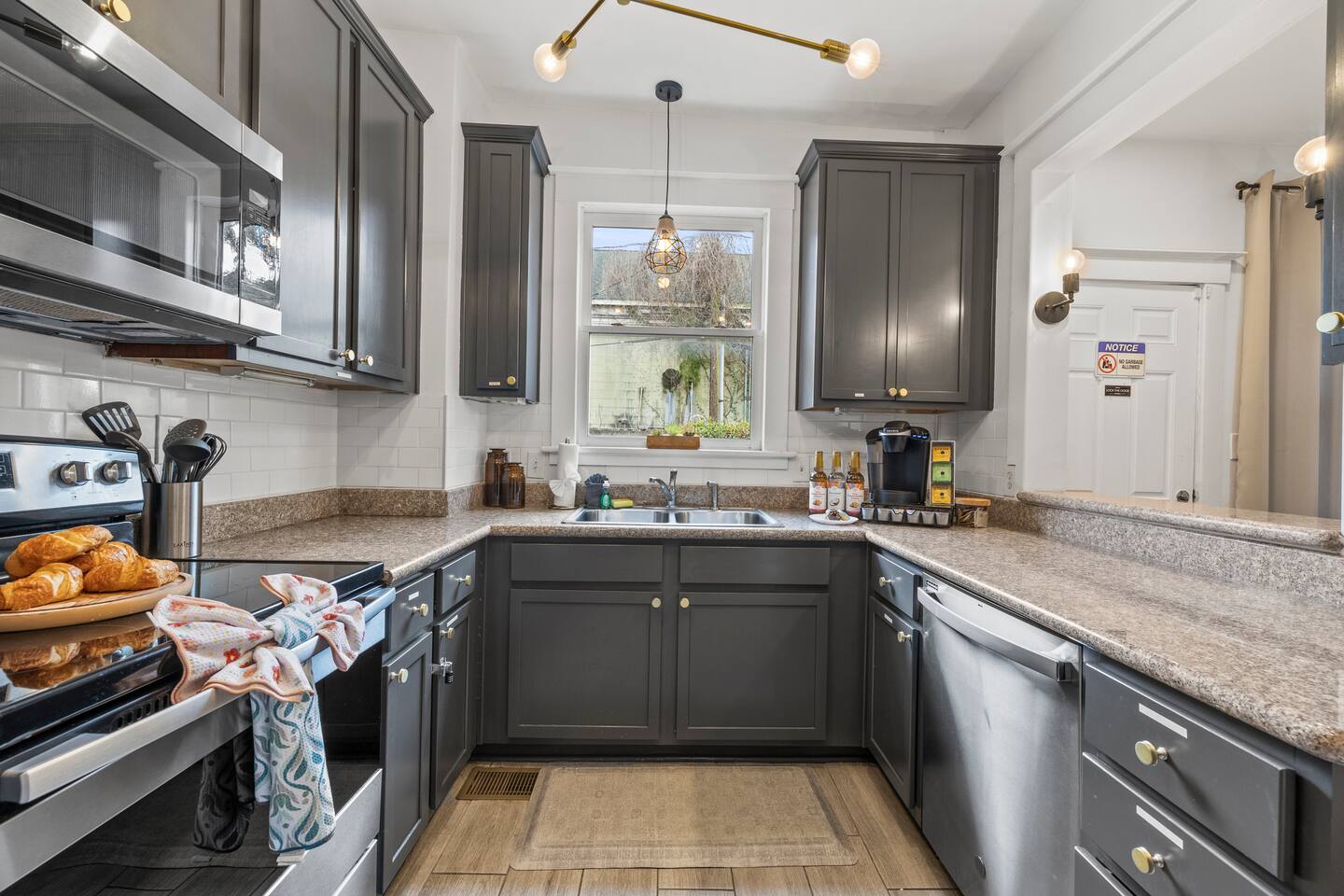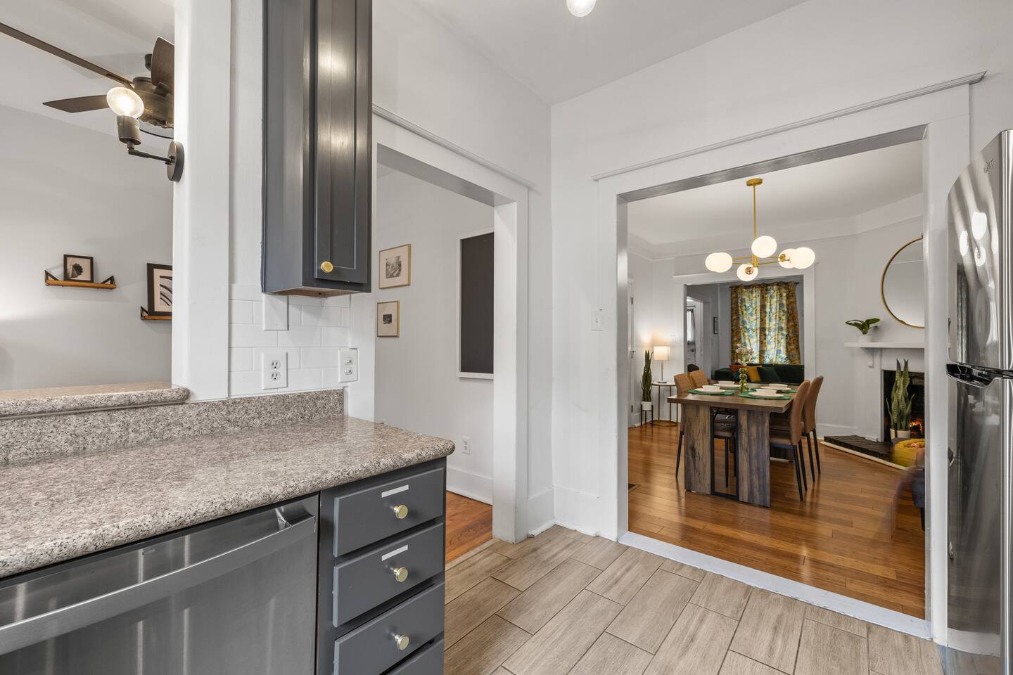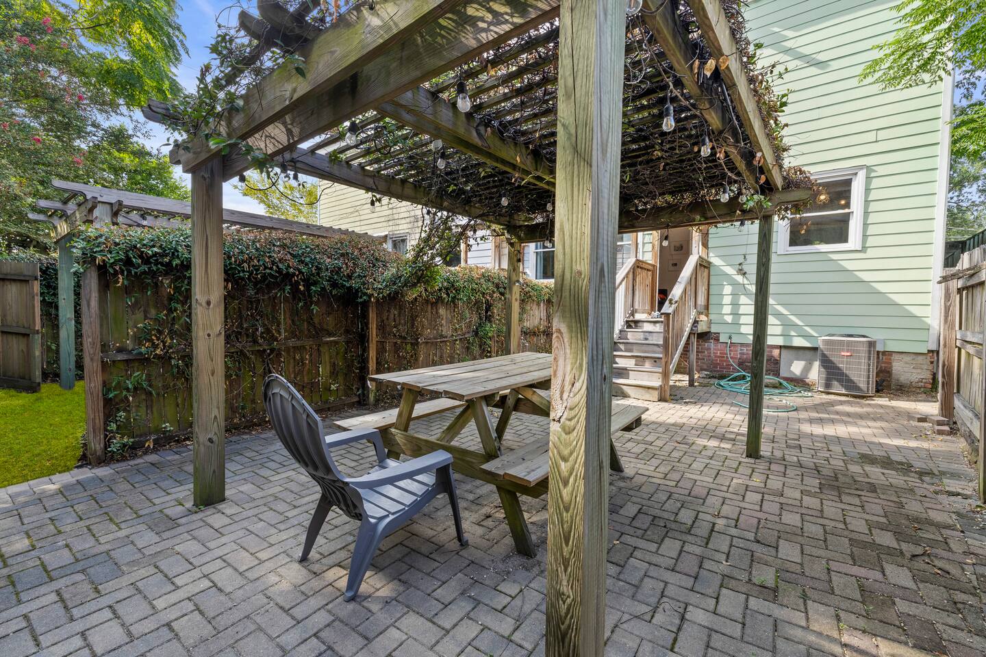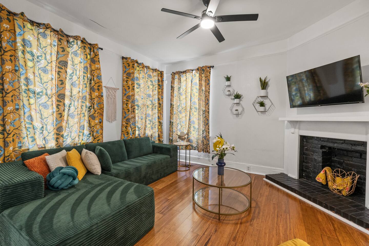 ☆☆ HIGHLIGHTS ☆☆ ✹ Private 3-apartment triplex home ✹ Sleeps up to 22 guests ✹ 9 Bedrooms w/ 9 queen beds + 1 sleeper sofa (sleeps 1) ✹ 3 Living rooms + 3 sleeper sofa (sleeps 1 each) ✹ 3 Full kitchens w/ modern appliances ✹ 3 Dining rooms w/ dining tables ✹ 6 Full bathrooms (ensuite) + 3 half-bathrooms ✹ Fresh towels + complimentary essential toiletries ✹ 3 Laundry rooms w/ washer and dryer + laundry pods + iron ✹ 3 Home offices + High-speed Wi-Fi ✹ 11 Roku smart TVs + Netflix ✹ Keurig coffee makers + complimentary coffee ✹ Central air-conditioning + ceiling fans ✹ Family-friendly; Pack ‘n Play + highchair (available on request) ✹ Dog-friendly (please no cats); pet fee applies ✹ Large front porch + 3 private enclosed backyards ✹ Ring camera at front door + electronic keypad locks ✹ Free on-street parking (first come, first serve) ✹ Free DOT shuttle 2 blocks away Eager to Read More? Here Are A Few Kind Words from Our Previous Guests: “Had such a beautiful and comfortable stay!! Definitely wanting to come back!.” – Dejah “The property and procedures were so pleasant and convenient! Check-in and check-out were both such a breeze, and any questions were answered very promptly. There were bars and restaurants close by that we could walk to and backyards that connected to each other for ease of access between the units, providing plenty of options for both going out and relaxing at the property. The fenced in backyard provided a lot of privacy, as well. Thank you so much for providing such an enjoyable stay for us!” - Steven “Our stay here was great! If you're not okay with being in a gentrifying neighborhood then it probably isn't the right place for you. We had absolutely no issues with that. Backyards imo look better in person than pictures. It was also nice to have so many bedrooms in the triplex.” - Kofi ☆☆ YOUR HOME AWAY FROM HOME ☆☆ This private, 2-story, 9-bedroom craftsman style triplex house features 3 spacious apartments, with hardwood flooring and decorative fireplaces throughout. It’s the perfect place for large groups such as wedding/bachelorette parties, family reunions, or folks looking to come to Savannah to have a great time and experience the city as locally and authentically as possible! ★★ BEDROOMS ★★ Whether you're traveling with family or friends, our comfortable bedrooms offer a relaxing stay with decorative fireplace features (no fires), queen beds, memory foam mattresses, and plenty of great amenities for a restful night’s sleep. ✹ Visionary Room: Master bedroom w/ ensuite bathroom ✹ Victory Suite: 2-bedroom suite w/ adjoining, jack-n-jill bathroom ✹ Serenity Room: Master bedroom w/ ensuite bathroom + dedicated workspace ✹ Good Vibes Suite: 2-bedroom suite w/ adjoining, jack-n-jill bathroom + sleeper sofa (sleeps 1) ✹ Wander Room: Master bedroom w/ensuite bathroom ✹ Darling Suite: 2-bedroom suite w/ adjoining, jack-n-jill bathroom ✔ 9 Queen beds w/ 12” Zinus Green Tea memory foam mattresses ✔ 1 Sleeper sofa (sleeps 1) in Good Vibes Suite ✔ Premium, 400 thread count sheets ✔ Extra pillows and blankets ✔ Decorative fireplace feature (no fires) ✔ Closet + full-length mirrors ✔ Large dresser (Darling Suite) ✔ 8 Flat screen Roku smart TVs + Netflix ✔ Electronic door locks ★★ BATHROOMS ★★ Each of the 3 triplex units has 2 full, ensuite bathrooms upstairs, plus a half-bathroom downstairs. Enjoy complimentary toiletries, helping you save vital luggage space for your favorite belongings and all-important souvenirs. ✹ Full Bathroom 1: Visionary Room ensuite - walk-in shower w/ rain-head ✹ Full Bathroom 2: Victory Suite jack-n-jill ensuite - walk-in shower + double vanity ✹ Full Bathroom 3: Serenity Room ensuite - clawfoot tub/shower + single vanity ✹ Full Bathroom 4: Good Vibes Suite jack-n-jill ensuite - walk-in shower + double vanity ✹ Full Bathroom 5: Wander Room ensuite - clawfoot tub/shower + pedestal sink ✹ Full Bathroom 6: Darling Suite jack-n-jill ensuite - walk-in shower + double vanity ✹ Half-Bathroom 1: Main guest half-bathroom w/ single vanity ✹ Half-Bathroom 2: Main guest half-bathroom w/ single vanity ✹ Half-Bathroom 3: Main guest half-bathroom w/ single vanity ✔ Essential toiletries (shampoo + conditioner + body wash) ✔ Hair dryers ✔ Fresh towels ★★ KITCHEN & DINING ★★ Enjoy the convenience of three full kitchens equipped with the essentials you might need to whip up a quick bite to eat when you’re not discovering the local restaurants. You’ll find the essentials you need from cookware and dishware to a Keurig coffee machine with complimentary coffee to start your day. ✹ Kitchen 1: Full kitchen w/ modern appliances + dining table (seats 6) ✹ Kitchen 2: Full kitchen w/ modern appliances + dining table (seats 4) ✹ Kitchen 3: Full kitchen w/ modern appliances + dining table (seats 4) ✔ Glass-top electric stove, oven, dishwasher, and microwave ✔ Full-size fridge and freezers ✔ Keurig coffee makers + complimentary Keurig coffee pods ✔ Essential cookware + dinnerware (including kid-friendly tableware) ✔ Highchair (upon request) ★★ LIVING ROOMS ★★ Each of the 3 private triplex apartments has a living room so you can look forward to kicking back in style and comfort after exploring Savannah’s historic downtown neighborhoods. ✹ Living room 1: Sleeper sofa (sleeps 1) ✹ Living room 2: Sleeper sofa (sleeps 1) ✹ Living room 3: Sleeper sofa (sleeps 1) ✔ 3 Decorative brick fireplaces (no fires) ✔ Flat screen Roku smart TV + Netflix ✔ Pack ‘n Play (upon request) ✔ Kids’ books, toys + board games (upon request) ★★ HOME OFFICES ★★ Working remotely? Each of the triplex apartments has a dedicated home office – it’s right off the kitchen - set-up your laptop, connect to our high-speed 100+Mbps Wi-Fi internet, and get down to business. ✔ Dedicated workspace w/ desk + chai