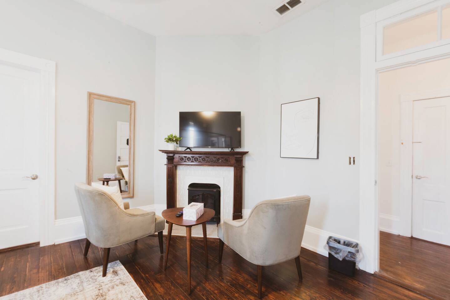 ☆☆ HIGHLIGHTS ☆☆ ✹ Private 2nd floor unit of 2-story Victorian-era duplex ✹ Sleeps up to 7 guests ✹ 3 bedrooms w/ queen beds + Roku TVs ✹ 2 dedicated workspaces ✹ Plush living room sofa (sleeps 1) + flat-screen Roku TV ✹ 2 full bathrooms + essential toiletries provided ✹ Full kitchen w/ modern appliances ✹ Keurig coffee maker + complimentary K-cups ✹ High-speed Wi-Fi w/ speeds up to 100+ Mbps ✹ In-unit full-size washer + dryer + laundry pods + iron + ironing board ✹ Family-friendly; Pack ‘n Play + highchair (available on request) ✹ Private porch balcony ✹ Electronic keypad door locks ✹ Dog-friendly (please no cats); pet fee applies ✹ Free on-street parking (first come, first serve) ✹ Free DOT shuttle 2 blocks away Eager to Read More? Here Are A Few Kind Words from Our Previous Guests: “The photos don't sell how great this apartment is! We loved our brief stay here - tonnes of space, great furnishings, and the location is such a leisurely walk to the town centre. Only wish we were there longer! Great host with a very useful welcome pack that has local recommendations and suggestions. 100% worth a visit!” – Morgan “The apartment is very spacious with beautifully designed rooms. The beds are super comfortable and it was extremely clean. We loved waking up and going to the coffee shop right down the block and walking through the park with our dog. Savannah was beautiful! I will be back and I will be staying here again :)” – Diana “In the heart of the Forsyth Park neighborhood, a house with character, high ceilings, big windows looking out on trees. The furnishings were modern and attractive, the apartment was spotless, the kitchen well equipped. The apartment is on the second floor, so you need to be prepared to carry bags up stairs, but it wasn't a problem for us. We only stayed one night, so I can't comment on nearby restaurants, but the Forsyth Park area has lots of trendy looking places to eat or get a cup of coffee.” – Abigail ☆☆ YOUR HOME AWAY FROM HOME ☆☆ This private, 3-bedroom/2-bathroom home is the upper unit of a two-story Victorian-era duplex in a very walkable central downtown neighborhood. Just a short 2-block walk to Savannah’s iconic Forsyth Park. Walk to many local favorite restaurants and experience Savannah’s vibrant culinary scene. Located in the heart of Savannah’s Victorian District, you're less than 15 minutes away from everything this charming city has to offer! We host multiple properties throughout Savannah! If you’re looking for something smaller, larger, or more specific, please get in touch to discuss your needs and we’ll help you find the best accommodation to meet your requirements. ★★ BEDROOMS ★★ Whether you're traveling with family or friends, our comfortable bedrooms offer a relaxing stay with decorative fireplace features (no fires), queen beds, memory foam mattresses, and many great amenities. ✹ Telfair Room – Primary bedroom; Queen size bed + 2 comfy chairs ✹ Oglethorpe Room – Second bedroom; Queen size bed + dedicated workspace + 2 chairs ✹ Pulaski Room – Third bedroom; Queen size bed + dedicated workspace w/ chair + lounge chair ✔ 12” Zinus Green Tea memory foam mattress ✔ Premium, 400 thread count sheets ✔ Extra pillows and blankets ✔ Decorative fireplace feature (no fires) ✔ Closets + full-length mirrors ✔ Flat screen Roku smart TVs w/ Netflix ✔ Electronic door locks ★★ BATHROOMS ★★ The two full bathrooms are outfitted with the amenities you need for a refreshing stay. Enjoy fresh towels and complimentary essential toiletries (shampoo + conditioner + body wash) helping you save vital luggage space for your favorite belongings and all-important souvenirs. ✹ Bathroom 1 – Walk-in shower + 10” rain-head ✹ Bathroom 2 – Tub/Shower combo ✔ Essential toiletries provided ✔ Hair dryer ✔ Fresh towels ★★ KITCHEN & DINING ★★ Enjoy the convenience of a full kitchen equipped with the essentials you might need to whip up a quick bite or a light meal during your stay. There is no formal dining room but there is a dining counter with seating for two in the living room. ✔ Fully equipped kitchen w/ modern appliances ✔ Glass-top electric stove, oven, dishwasher, and microwave ✔ Full-size fridge and freezer ✔ Keurig coffee maker + complimentary Keurig coffee pods ✔ Essential cookware + dinnerware (including kid-friendly tableware) ✔ Highchair (upon request) ✔ No formal dining room ★★ LIVING ROOM ★★ With high ceilings, a decorative fireplace feature, modern lighting, mid-century inspired modern furniture, and access to a private upper porch-balcony, this living room is the perfect place to relax and unwind. ✔ Stylish couch + 2 lounge chairs ✔ Decorative fireplace feature (no fires) ✔ Dining counter + 2 chairs ✔ 55” flat screen Roku smart TV + Netflix ✔ Pack ‘n Play (upon request) ✔ Kids’ books, toys + board games (upon request) ✔ Porch balcony w/ private access ★★ ACTIVITIES/ATTRACTIONS ★★ Savannah’s history, culture, and natural beauty awaits you, where around every corner reveals a new adventure waiting to be discovered. Savannah truly is a walking city, and with so much great sightseeing you can create your own walking tour just stepping outside the door. ✹ Forsyth Park - Stroll under the moss-draped trees, surrounded by amazing architecture. Only a short 2 block walk from the home! ✹ Savannah Historic District - Spend an afternoon exploring the treasure trove of beautiful period architecture that gives Savannah its distinctive southern charm. Stroll along the tree-lined streets and explore the 22 historic squares, each with its own individual character. ✹ Broughton Street - The shopping district between Broughton Street and City Market is the main shopping corridor in downtown Savannah. Built in 1755, Savannah's famous City Market has been known as the heart of Savannah